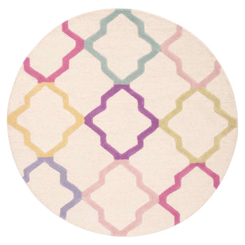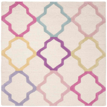 This square-shaped rug is designed to blend seamlessly into your home with its plush 1/2" pile height and a delightful Ivory / Multi color palette that complements a variety of decors. The rug features an enchanting geometric pattern, displaying a harmonious balance of ivory hues interplayed with soft, multicolored outlines that create a sense of rhythm and flow throughout the design.