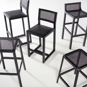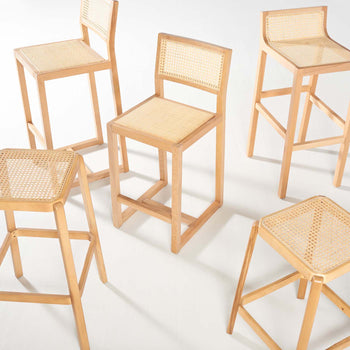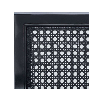 Pairing subtle curves and clean angles, this Saito Bar Stool is perfect for enriching any decor with a calming sense of depth and dimension. Saito's beech wood frame in a sleek black finish highlights a natural cane rattan seat for a touch of contemporary chic flair.