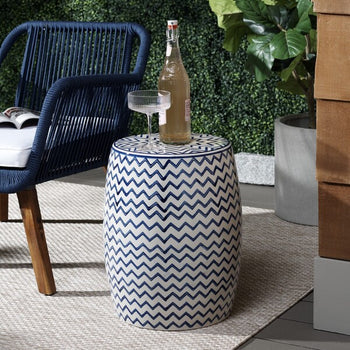 Add a chic and elegant accent to your home with our Salana garden stool. Our drum-shaped stool adorns a chic and classy chevron pattern to bring visual interest and charm to any space. Enriched in a bright color, the garden stool serves as a fun and simple way to liven up any corner of your home. The stool can be used both indoors and outdoors serving as a handy cocktail table or an eye-catching plant stand.