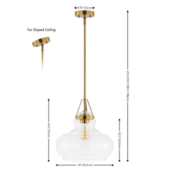 Safavieh Salud 14 Inch Gold/Clear Glass/Iron Pendant , PND4169