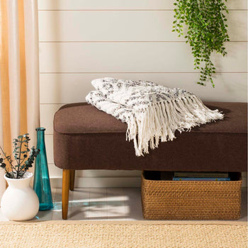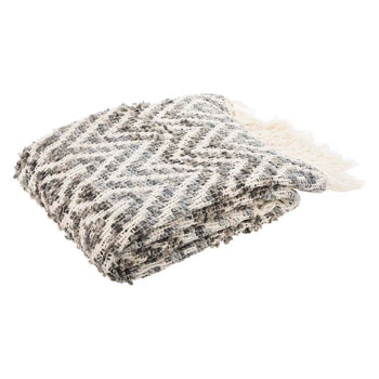 Long flowing fringes and an evocative na?ve pattern lend a timeless look and soft feel to the Santi Fringe Throw. Made of pure soft cotton with a modest grey on white pattern, Santi is an ideal throw when classy casual style is the desired look for the bench, love seat, accent chair or sofa.