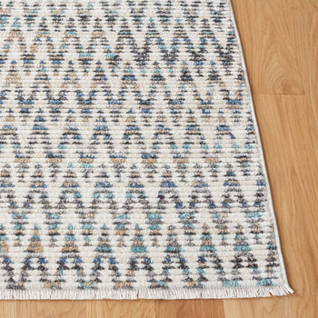 The runner's bohemian style is perfectly encapsulated in its intricate pattern, reminiscent of tribal designs and geometric motifs. The Ivory and Dark Grey hues harmoniously intertwine to create an aesthetic that is both traditional and modern, showcasing a series of repeating diamond shapes and angular lines which bring a sense of movement and texture to your floors.