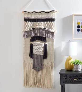 This Sedona Hidalgo Woven Wall Art boasts layers upon layers of unparalleled artistry perfectly styled for today's boho-chic interiors. A vast array of stitch and knotting techniques create a stunning display in soft ivory and grey wool-viscose yarns, while multiple fringe overlays make Hidalgo a designer favorite.