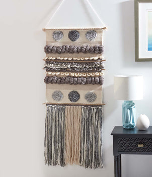 Revitalize your Decor with the striking visual intrigue of this Sedona Roxzie Woven Wall Art. Roxzie's dramatic texture is beautifully displayed in lush wool blend yarns, while its earthy ivory and grey tones add another layer of decorative depth to any room's color scheme.