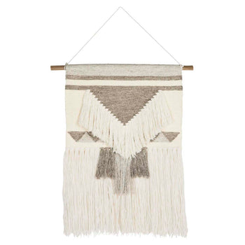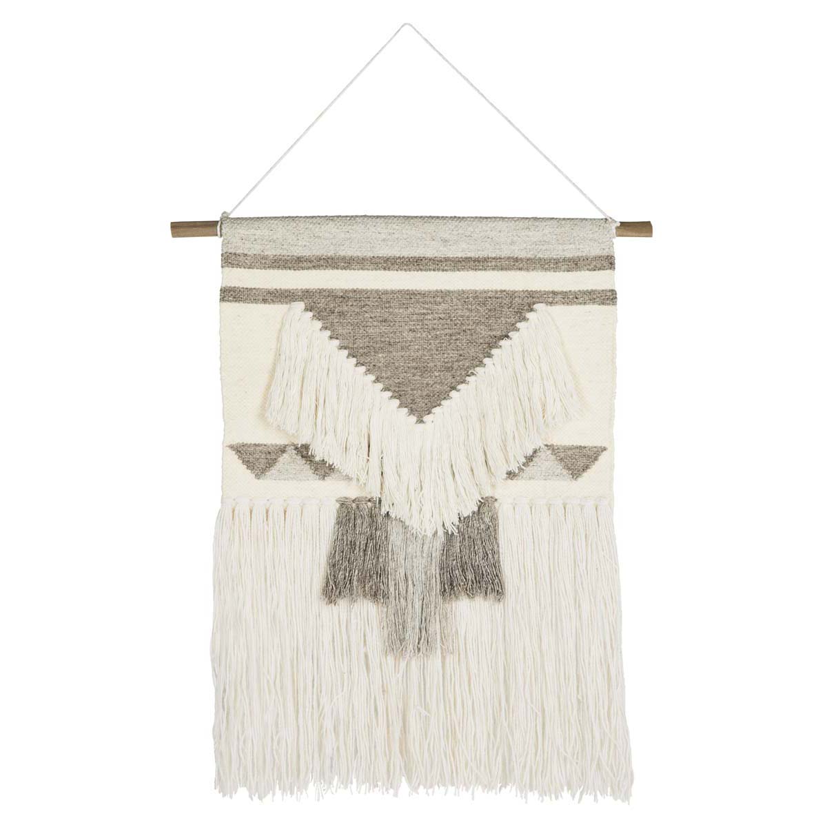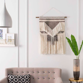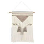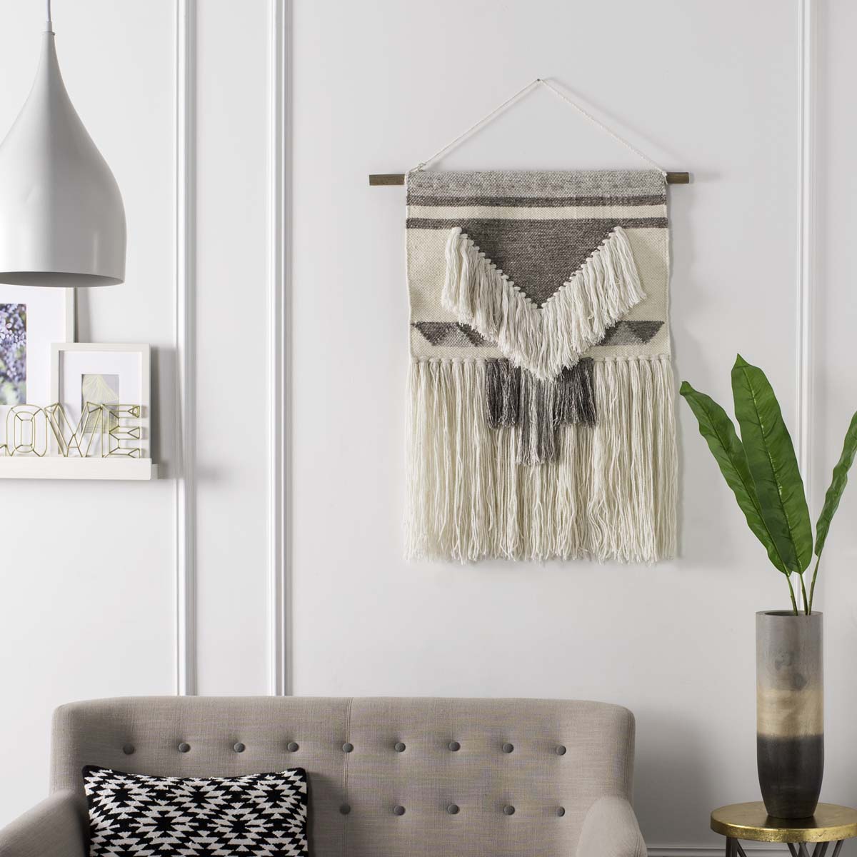 Make a bold artistic statement with this woven wall art. Crafted with wool and cotton, its layers of texture and chic fringe highlight its modern geometric patterns and luxurious hues. An ideal focal point for any living room.