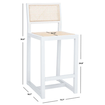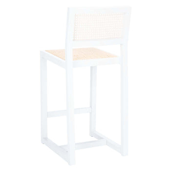 A fresh contemporary take on calming coastal style, this Seika Counter Stool is a striking study in artistic movement and negative space. Seika's natural rattan seat and back are paired with a subtly curved and angled frame of black beech wood, emanating relaxed seaside vibes at the kitchen island or indoor bar.
