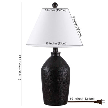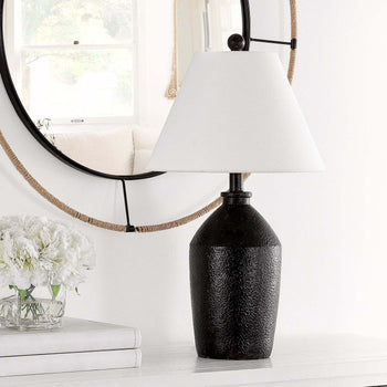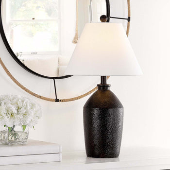 Styled after ancient pottery from the cradle of civilization, this Selna Table Lamp brings a collector's charm to any room. Selna's organic textural intrigue is beautifully offset by the crisp lines of its white empire shade, its deep brown tone emanating a warm, rich feel.