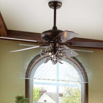 Transform any living room with this elegant ceiling light fan. Its transitional style updates any decor with its lovely rustic bronze finish and graceful gentle glow. Perfect for creating a comfortable environment in any season, designers love its value.