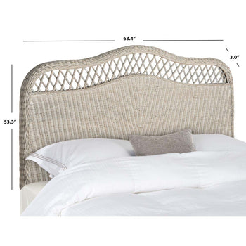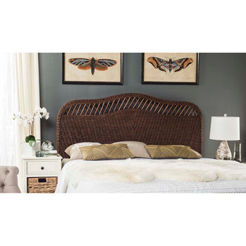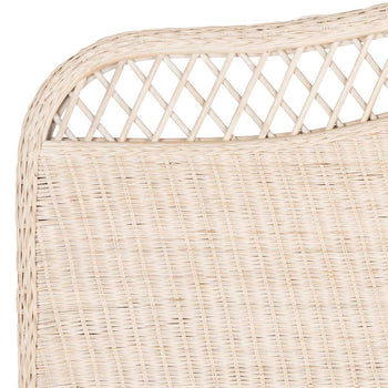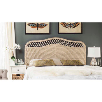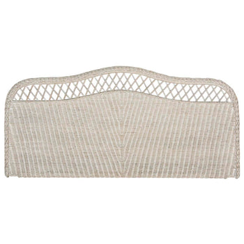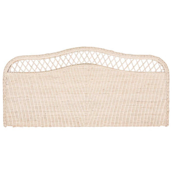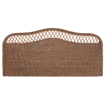 Choose this intricately woven rattan headboard for a feminine look in coastal and country bedrooms. Crafted in a combination of rattan and hardwoods, the allover weave and camelback design are spiffed up with airy open trellis work.