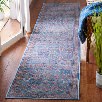 Introducing our exquisite Transitional Style Runner Rug, measuring a versatile 2 feet by 9 feet to perfectly accent your hallways or elongated spaces. This runner is an aesthetic symphony of rust and blue hues, expertly power-loomed to achieve intricacy in design and enduring quality.