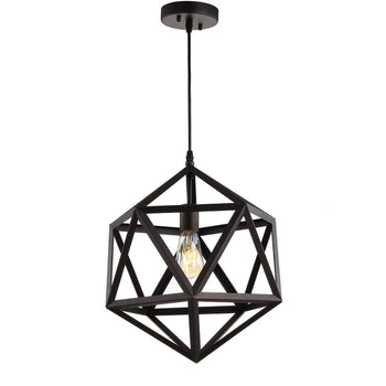 Bold and dynamic, this stunning contemporary pendant brings drama and character to any living room or entry. Its sculpted metal geometric form is finely crafted with the beauty of an iron finish. Designers love the luminous glow from its single bulb.