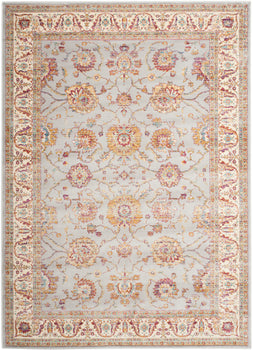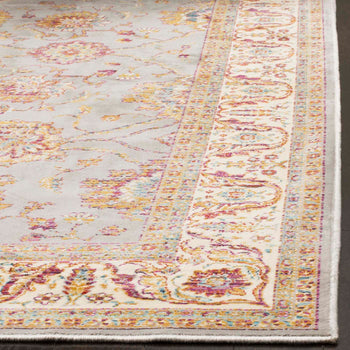 The rug's design features a sophisticated pattern, presenting traditional motifs that are delicately interwoven across its surface. Subtle floral medallions grace the center and corners, framed by intricate borders that highlight its refined attention to detail. The serene palette effortlessly coordinates with a range of decors, making it a versatile choice for any room.