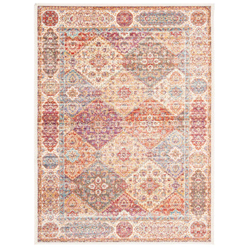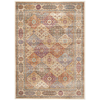 The rug boasts a captivating array of hues, harmoniously interwoven to create a visual feast for the eyes. The intricate pattern includes a series of geometric and floral motifs that echo the timeless beauty of classic designs, while the subtle gradations of color give it a contemporary twist. At a height of 1/4 inch, the low pile ensures easy maintenance and a sleek profile, suitable for a variety of interiors.