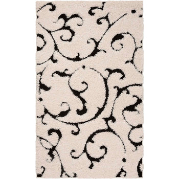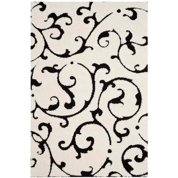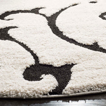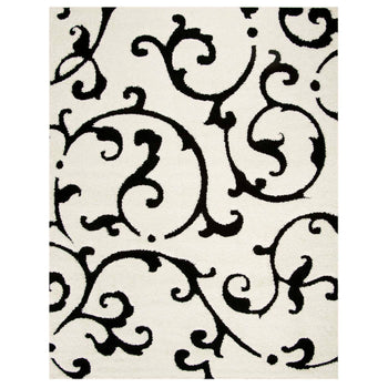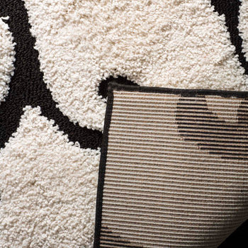 The sophisticated ivory backdrop is adorned with bold and dynamic black patterns that bring a striking contrast and an artistic touch to any corridor or space it graces. Drawing inspiration from classic motifs, the shag style of the rug introduces a sense of warmth and texture, making it a versatile addition to both contemporary and traditional interiors.