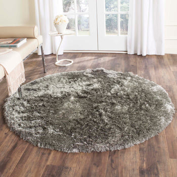 The subtle patterning, as showcased in the image, adds depth and dimension, creating a stunning visual effect that complements a wide range of decor styles. Whether it's the focal point in your living area or a sumptuous addition to your bedroom, this round area rug is sure to enrich your interior with its understated charm and luxurious feel.