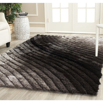 The rug's distinguishing feature lies in its striking pattern; a dynamic play of light and shadow captures the essence of timeless grace and modern appeal. The gentle gradations and abstract textural detailing add an artistic touch that will elevate the charm of any room it adorns.
