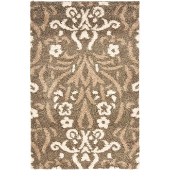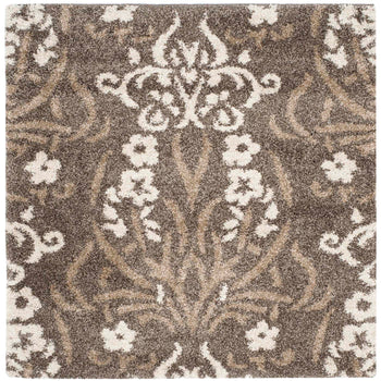 Introducing our plush 4' X 4' Round area rug in an elegant Smoke / Beige color palette, perfect for bringing a touch of sophistication to any space. This beautiful round shag rug, crafted with a Power Loomed technique from polypropylene pile, offers a luxurious underfoot experience with its substantial 1 1/8" pile height.