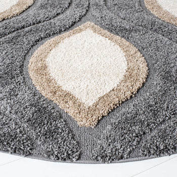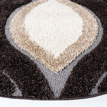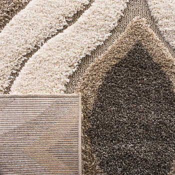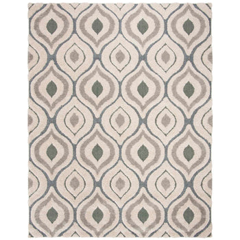 Crafted in Turkey, this rug boasts a durable power-loomed construction and is made of high-quality polypropylene pile, ensuring long-lasting beauty and easy maintenance. The distinct pattern displayed showcases organic-like shapes in a repeating and symmetrical arrangement. These shapes include diamond motifs with leaf-like figures, celebrating both contemporary design and traditional elements.