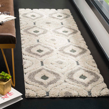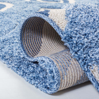 Elevate your living space with our exquisite accent area rug, sized at a convenient 2 feet 3 inches by 5 feet, perfect for adding a touch of elegance to any room. This rug features a harmonious blend of cream and light blue hues, creating a soothing atmosphere that complements a variety of decor styles. The shag style and 1 1/8 inch pile height offer a plush, comfortable feel underfoot, inviting you to step into a world of coziness.