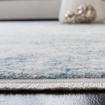 The contemporary style seamlessly integrates into any decor, with a color palette of serene blues and neutral greys that evoke a sense of calm and elegance. The dynamic pattern draws the eye with its abstract striations, reminiscent of a serene waterscape or the quiet beauty of a weathered artifact, that brings an artistic touch to your hallway or living space.