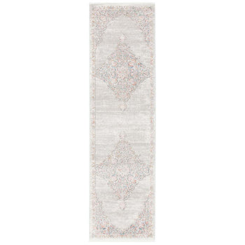 The power-loomed technique employed in creating this rug ensures a precise and consistent pattern, while the height of 3/8 inch offers a low profile for ease of placement in entryways and beneath doors. The modern color palette features a harmonious blend of grey and rose, imparting a subtle yet inviting warmth to your space.