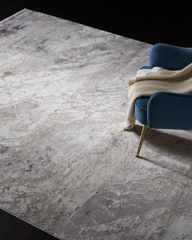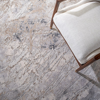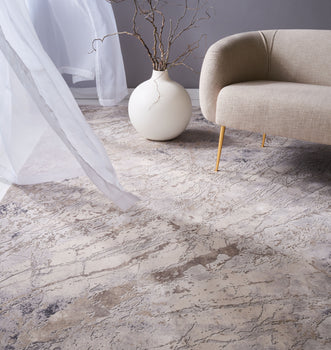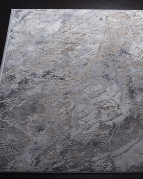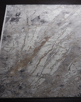 The visually captivating pattern depicted in the image showcases a dynamic abstract design that mimics the beautiful irregularities found in natural stone and minerals, making it a versatile addition to a variety of decor settings. Most importantly, this rug is not just a floor covering, but a piece of art that will anchor your room with its contemporary style.