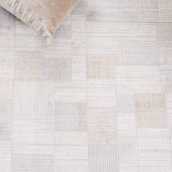 This modern rug boasts a height of 1/4" with a luxuriously soft blend of 80% Viscose and 20% Acrylic, ensuring durability with a gentle feel underfoot.