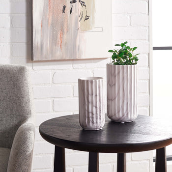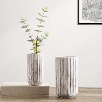 Give a timeless and graceful touch to your home decor with our Silene vase set. A sleek and crisp vase is softened with a rounded base to become a sophisticated accent for your tabletop. Completed with a timeless white marble finish and a stunning fluted detail, our vases bring effortless style and charm to your home decor. It remains perfect for housing your favorite botanicals or can be grouped together to create a charming and timeless display for your tabletop, mantelpiece, or bookshelf.