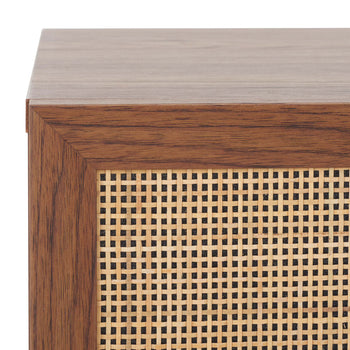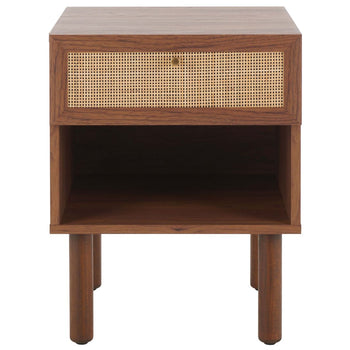 Bring a dose of warmth and style to your bedside with our Silvanna nightstand. Our stunning nightstand unites a functional design with the warmth of natural material. It features a rattan mesh upon the front panel to accentuate its modern and airy profile. Enriched in the rich textures of a walnut veneer, our nightstand is sure to brighten up your bedroom. It features a drawer and open shelf to keep all your nighttime essentials organized and within easy reach.