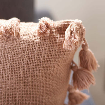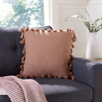 Express your more carefree side with this playful Skyla Pillow. Skyla's soft pink cotton gives any Decor a touch of color while its plentiful tassel details make Skyla a whimsical addition to the sofa, bench, or favorite armchair.
