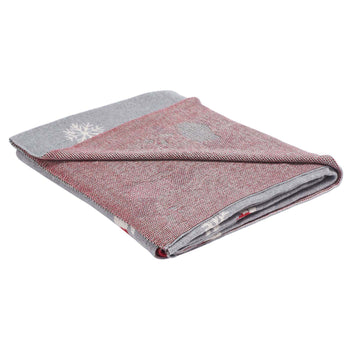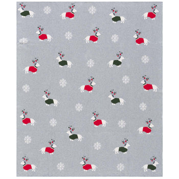 Reindeer aren's Santa's only four-legged friends! Celebrate snuggle season with this adorable Sleigh Bells Throw Blanket. Styled with icons of pups decked out in their Christmas best, replete with ornamented antlers, this cozy accent accessory is luxuriously soft to the touch in grey and red cotton.