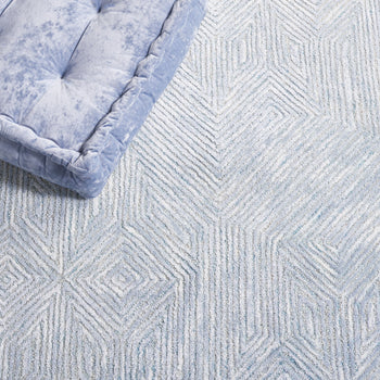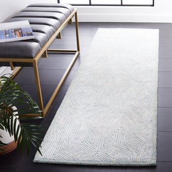 Elevate your home with this stylish piece that effortlessly combines form and function. Its contemporary design and craftsmanship make it a centerpiece in both traditional and modern interiors. Enhance your living space with this versatile blue and grey geometric runner.