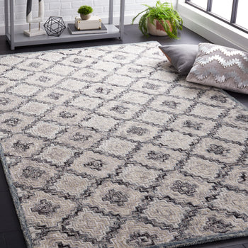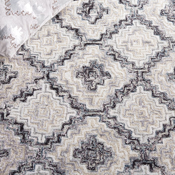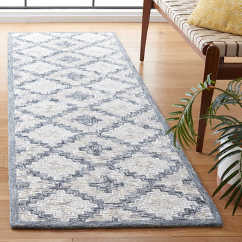 Elevate your space with this stunning 2 ft 3 in x 8 ft runner rug, showcasing a harmonious grey and ivory color palette. Crafted with precision, its hand tufted weave technique creates a delightful texture. Made from 50 percent viscose, 30 percent wool, and 20 percent cotton, this rug offers a soft touch underfoot. Originating from India, this runner seamlessly blends into any decor with its transitional style. The geometric pattern adds a contemporary flair, making it a versatile addition to various room settings. With a practical height of 1/4 inch, it is perfect for high-traffic areas. This rug not only enhances the aesthetic appeal of your home but also provides a cozy and inviting atmosphere. Transform your hallway or entryway with this elegant piece and enjoy the blend of style and comfort it brings to your home.