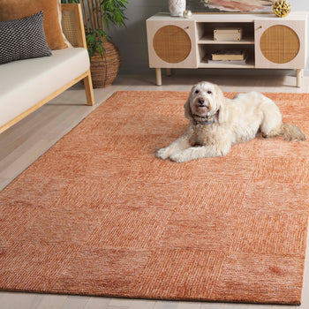 Ideal for high-traffic areas, this runner rug promises durability and an inviting underfoot experience. Its modern design and captivating texture make it a statement piece in any modern home. Choose this rust runner to infuse your space with a contemporary flair and a splash of warm color.