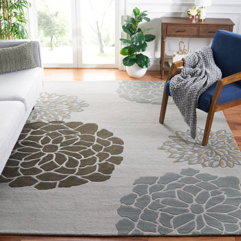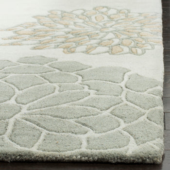 Elevate your living space with this elegant area rug, measuring 9-6 by 13-6. Crafted with care in India, this hand tufted masterpiece features a delightful floral pattern in a soothing light grey hue that complements any contemporary decor. Made from soft wool, the rug offers both style and comfort underfoot. The large rectangle shape and 3/8 inch height make it a versatile choice for various room layouts, adding a touch of sophistication to your home. Transform your space effortlessly with this beautifully designed rug that unites modern style with traditional craftsmanship.