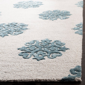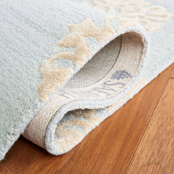 Elevate your living space with this exquisite 2'0" x 3'0" area rug, designed to bring a touch of elegance and warmth to any room. Crafted with care in India, this hand-tufted wool rug features a beautiful floral pattern that blends ivory and light blue hues. Its contemporary style effortlessly complements modern decor, while the accent shape and 3/8 inch height add a subtle layer of dimension. Perfect for adding both texture and style, this rug invites comfort and sophistication into your home. Transform your space with the beauty and craftsmanship of this thoughtfully designed piece.