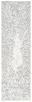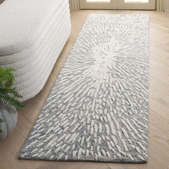 Transform your hallway with this stunning runner rug, a masterpiece of contemporary design. Measuring 2 feet 3 inches by 8 feet, it is crafted in a sophisticated grey and ivory palette. The abstract pattern adds a modern touch, making it a striking focal point in any space. Hand tufted in India, this rug combines the soft textures of 40 percent wool, 40 percent viscose, and 20 percent cotton to offer comfort underfoot. At a height of 1/2 inch, it fits seamlessly in high-traffic areas while enhancing the decor. This rug is not just a decorative item but a stylish addition that elevates your home ambiance with its unique flair.