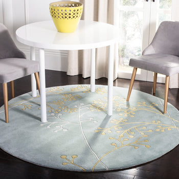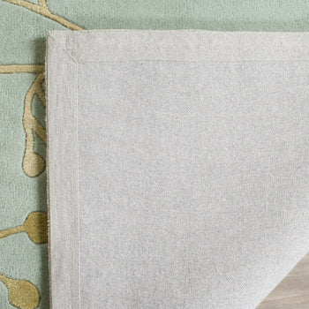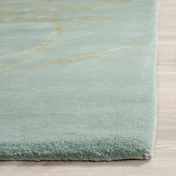 Add a touch of elegance and modern charm to your home with this oversized area rug. Measuring 11 feet by 15 feet, this light blue masterpiece features a stunning floral pattern that is sure to enhance any space. Crafted in India, this contemporary style rug is hand tufted, using the finest wool, ensuring both beauty and comfort underfoot. With a height of 5/8 inch, it offers a plush feel, perfect for living rooms, bedrooms, or any area where style and comfort are desired. Embrace sophistication and warmth with this exquisite wool rug that transforms your home into a haven of style and grace.