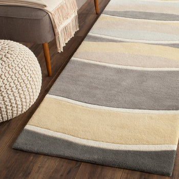 Introducing a stylish accent to complement your living space. This 2 by 3 foot rug combines an elegant grey and gold palette, harmonizing perfectly with a contemporary setting. The abstract pattern is skillfully crafted using the hand tufted technique, ensuring a touch of artistry in every piece. Made with a blend of wool and viscose, it brings a gentle texture and a subtle shine to any room. Originating from India, this rug showcases craftsmanship and modern design. Whether enhancing a cozy corner or adding interest to a main area, this accent piece serves as a delightful highlight in any home decor. Transform your space with this sophisticated, artistic touch.