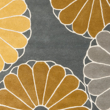 The harmonious blend of grey and yellow hues gives this rug an eye-catching allure, with its pattern boasting bold and large floral motifs that bring a captivating essence of natural beauty to your space. Each bloom is intricately outlined in a lighter shade, adding depth and sophistication to the design.