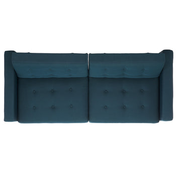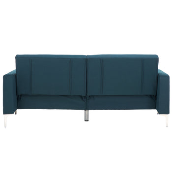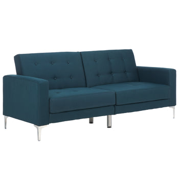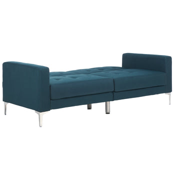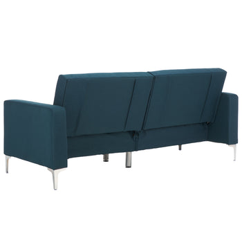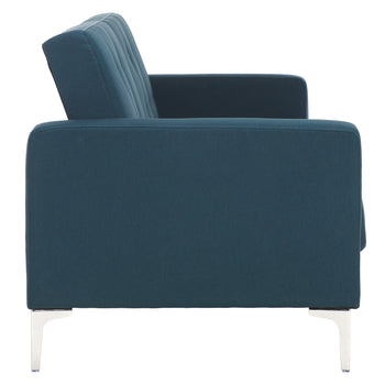 The hallmark of gracious modern living, the classic navy hue of this contemporary loveseat makes its an instant classic. Designed to instantly transform into a foldable futon style sofa bed, its clean lines and chic metal legs make it a designer must have.