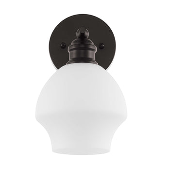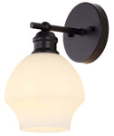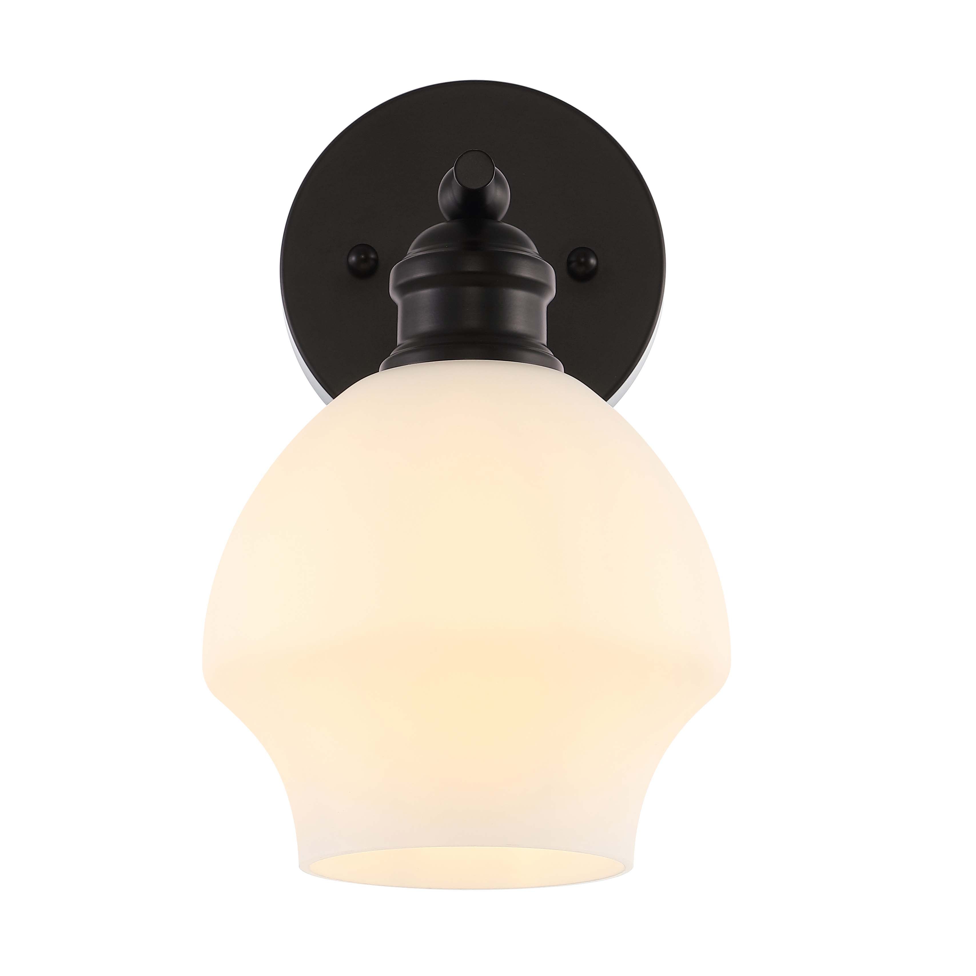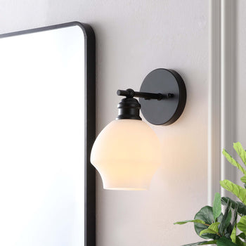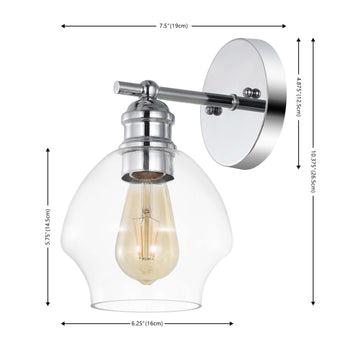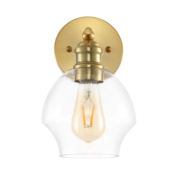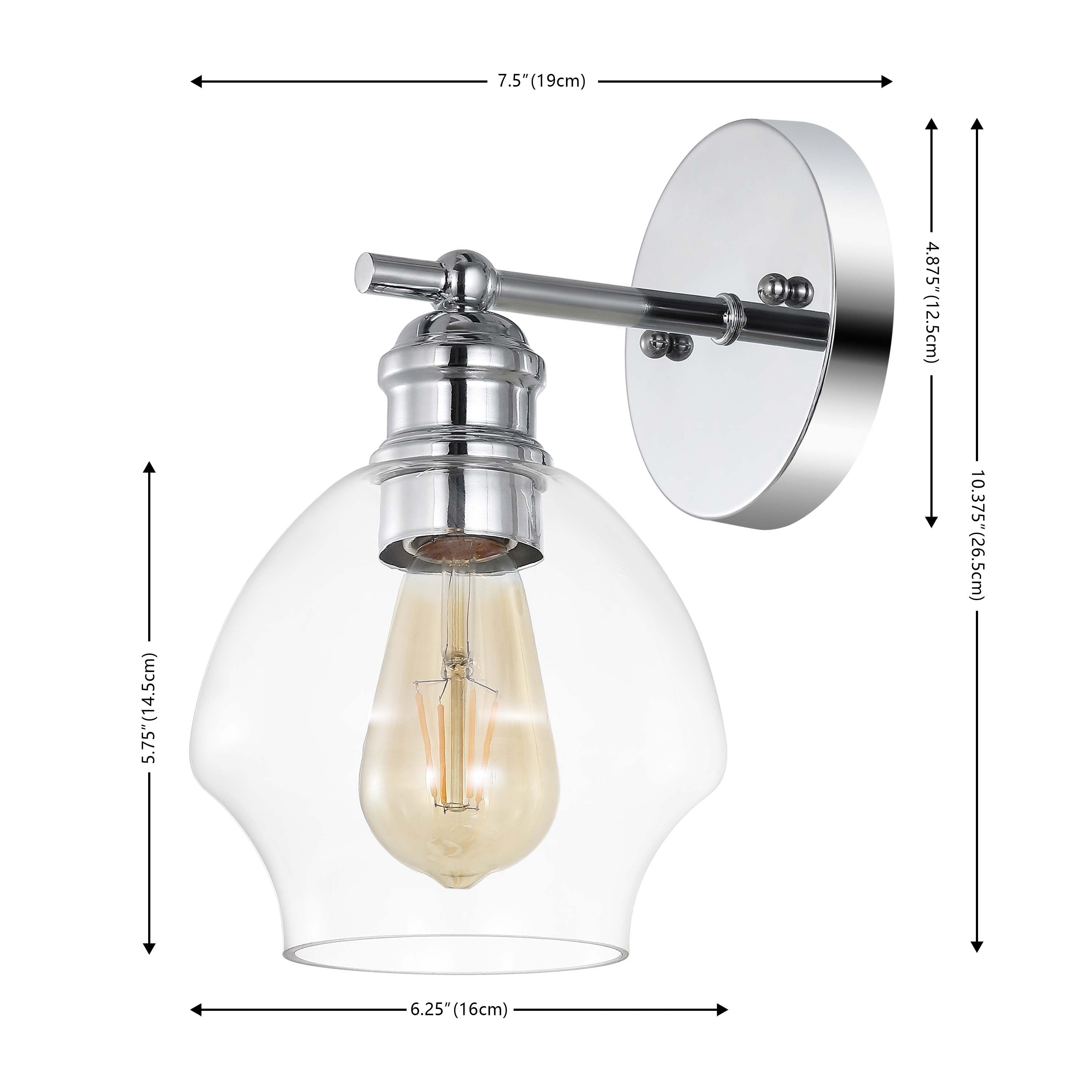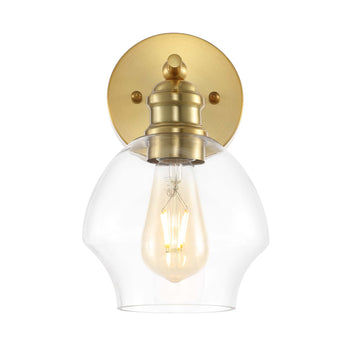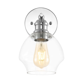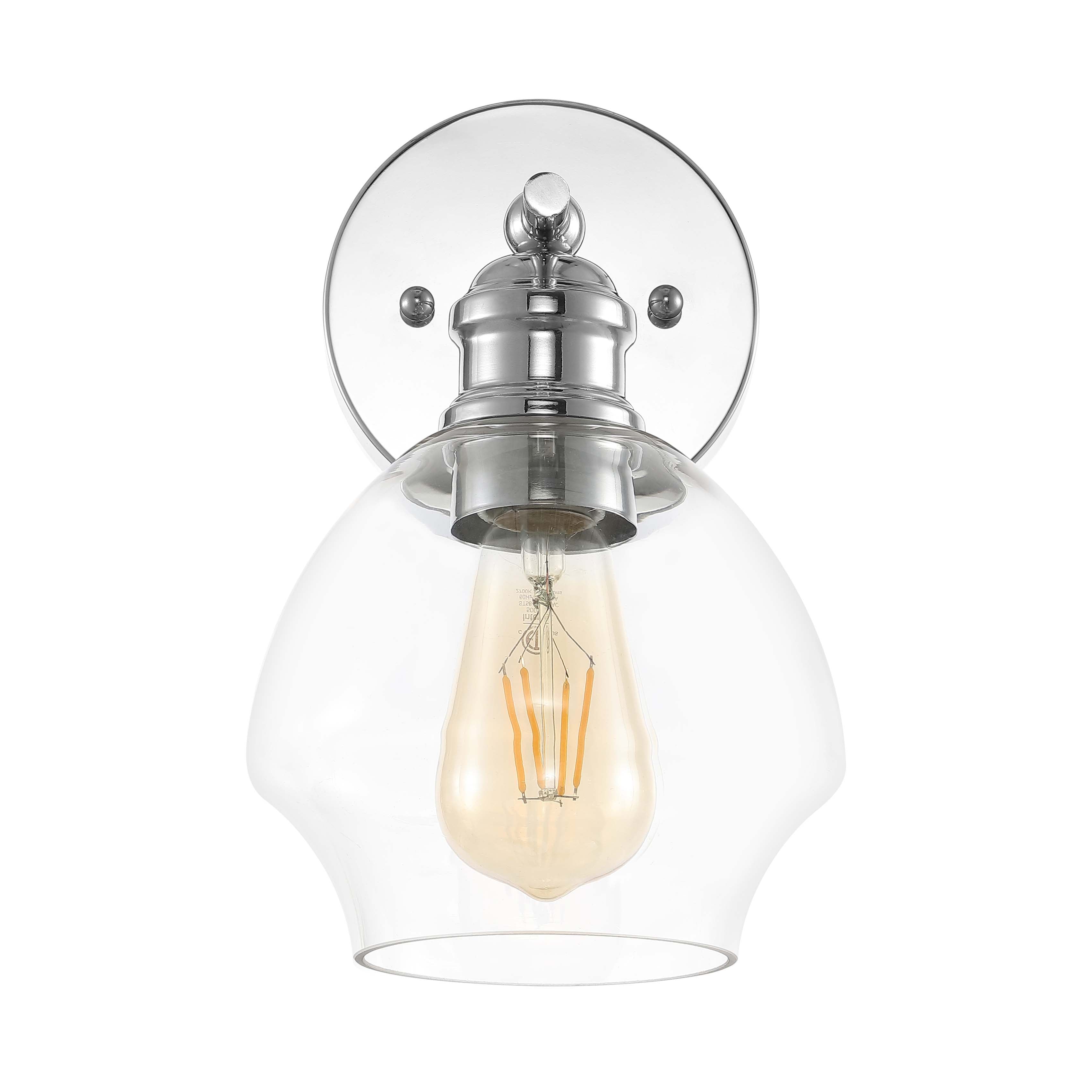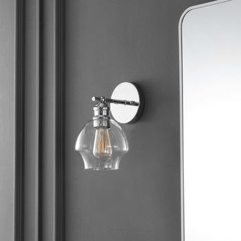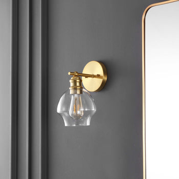 Bring sophisticated style to your home with our Solynn wall sconce. The clean and refined silhouette of the shade features crisp curves to serve as an elegant and graceful detail on your walls. The clear glass shade remains the perfect complement to the black hardware to bring a perfect touch of luxury to any room. Our wall sconce creates a gorgeous display of the bulb, imparting a radiant glow for styling and illuminating your hallway, lounge, powder bath, or bedroom.