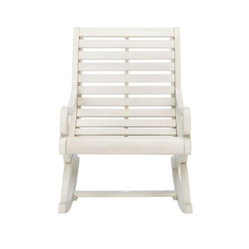 The porch rocker gets a glamour makeover in this outdoor rocking chair with transitional lines that update the profile of a British classic. Crafted of eucalyptus wood in a clean white finish, this piece is perfect reading, dozing, or watching the sunset with a drink in hand.