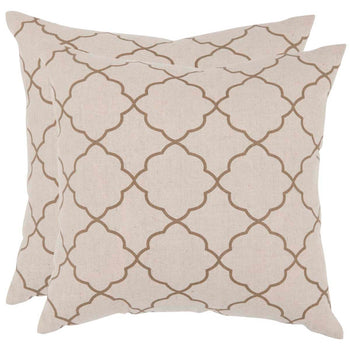 With its timeless Moroccan motif adapted from a designer Dhurrie carpet, this clean and simple accent pillow will brighten any interior. Its chic taupe color is printed on a cover of organic cotton and linen, and will blend beautifully with any interior p