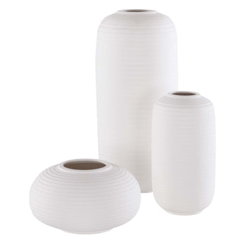 Bring modern sophistication to your tabletop with our stunning Sora vase set. The crisp cylindrical profile of our vase is softened with rounded edges to vouch for a sleek and stylish silhouette. The vases are enlivened with intricately incised circular bands for a soothing and graceful presence. Adorned in a versatile ivory shade, it serves as a go-to vase for all seasons, corralling your faux botanicals and freshly cut flowers. Available in a variety of sizes, our modern vases can be grouped together for a captivating display.