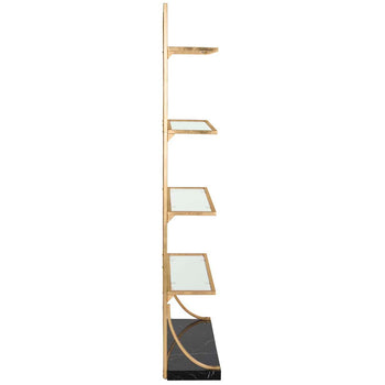Add a touch of glamour to your Decor with this contemporary glass tier etagere. Its black marble veneer base complements its gold frame to create a luxe look in any living room or bedroom.