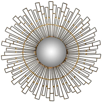 A contemporary starburst effect is crafted of forged iron to create the elegant Starlight Mirror orbited with two bands of contrasting metal. A timeless wall accessory that complements myriad decorating schemes, this mirror expands your interior space with style.