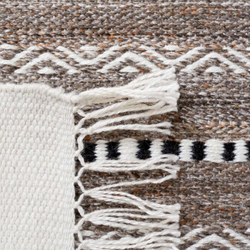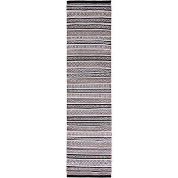 Constructed with precision using the Flat Weave technique, this polyester rug brings durability and easy care to its beautiful aesthetic. Its enchanting pattern showcases harmonious geometric motifs, creating a rhythmic visual that complements both contemporary and classic interiors. The black and ivory colors offer a striking contrast that anchors your decor while infusing it with an air of understated luxury. Whether placed in an entryway, kitchen, or living area, this runner rug is a versatile choice that promises both style and functionality.