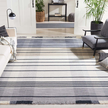 Striped Kilim Rugs are an artful display of bohemian flat weave area rugs. Kilim rugs are hand woven using pure soft cotton in the finest traditions of nomadic people from the Middle East to Central Asia. The revived tribal-inspired designs and striking colors of Kilim add an alluring decorative element in room decor.