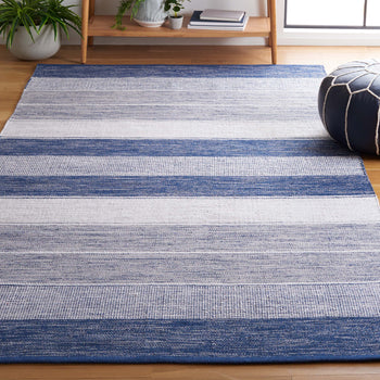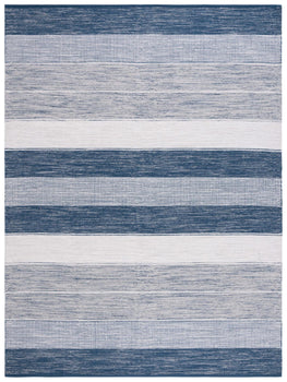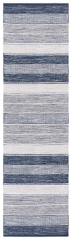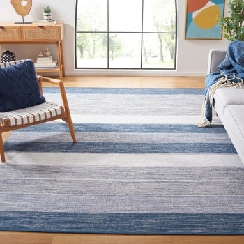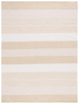 The rug's design features a sophisticated pattern of alternating ivory and gold stripes, imbuing your floor with a subtle yet luxurious appeal. The low-profile 1/4 inch height makes it an ideal choice for high-traffic areas, ensuring easy maintenance and seamless integration with your existing decor.